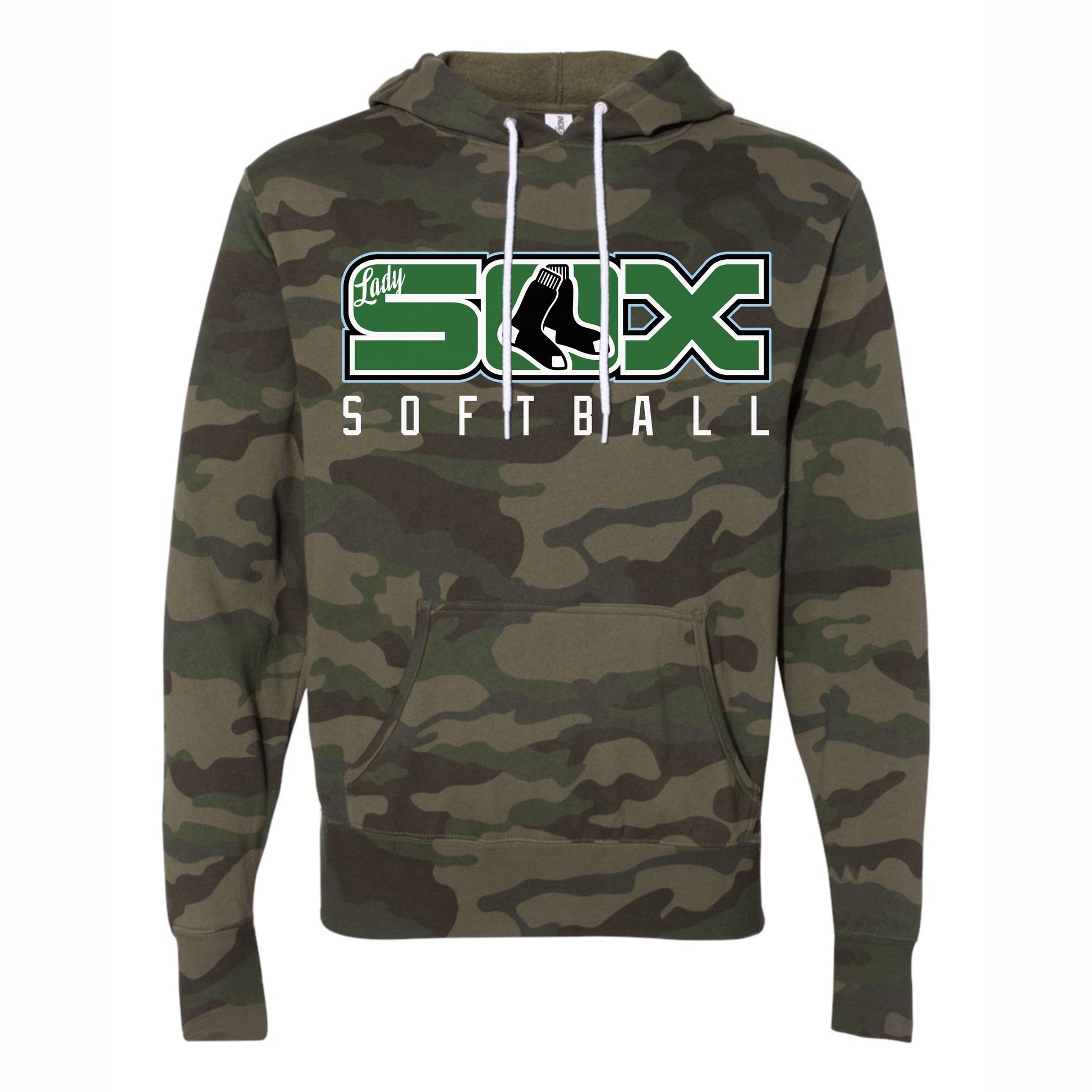 Lady SOX Softball Logo Forest Camo Adult Hoodie